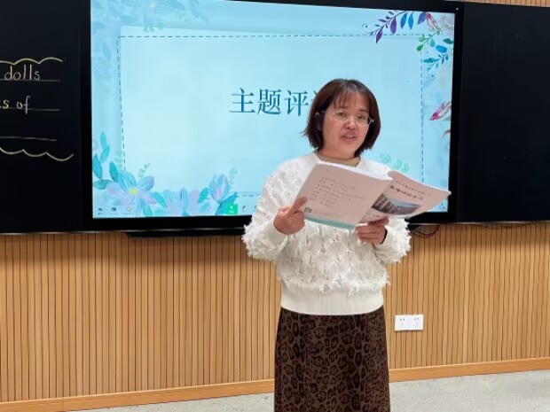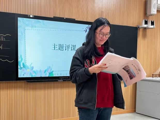 课例展示后,教研组教师热烈讨论。吉靓老师认为,苗老师的课堂能够利用多模态素材创设主题语境,帮助学生在学习的过程中聚焦主题意义。课堂融合多样阅读策略,充分调动了学生的学习自主性,在读、演、创中形成个性化的主题意义理解。朱宁宁老师认为,本节课教师能精准把握新教材“文化渗透”与“素养导向”的核心要求,通过设计层层递进的教学活动,将文本信息结构化,进一步培养了学生的梳理归纳能力,真正服务于学生语言能力的提升。
