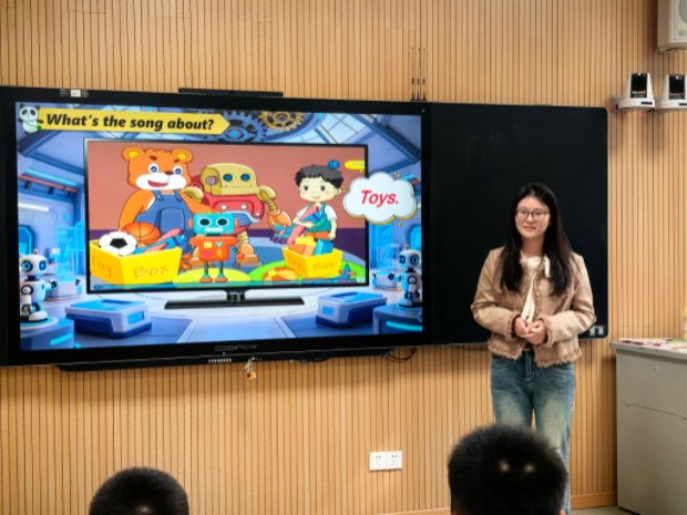 苗翠萍老师执教的第一课时以 “My favorite toy”为主话题,并以机器人博物馆情境为主线,学习核心语言并提炼单元主题。苗老师教态自然,语音亲切,和学生一起观察不同的机器人,通过角色扮演、游戏等多样化的互动形式,以任务驱动学习,节奏清晰、层层推进,鼓励学生大胆开口。最后,通过 “Different robots, same fun”深化主题,自然回应本课核心问题:Why do you like robots?为第二课时的学习埋下伏笔。